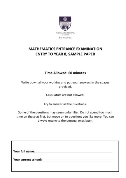 Read year 8 maths assessment papers Doc